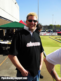 The step down onto a fast back straight had racers fiddling with slippers all day. The trusty alloy ramps have made the trip to the new venue as, unfortunately, have the chinese hats.